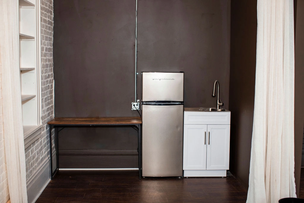 The venue offers its guest seating up to 75 guests. There is one main bathroom with a changing table. A kitchenette with a compact fridge, microwave and sink.